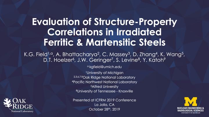 Photo by NOMEProf. Field presented his invited talk titled, “Evaluation of Structure-Property Correlations in Irradiated Ferritic & Martensitic Steels” at the 2019 International Conference on Fusion Reactor Materials in San Diego, CA on October 28th, 2019.