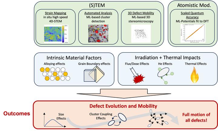 Overview of the “Many Defects” project with University of WisconsinProf. Kevin G. Field recently attended the Mechanical Behavior and Radiation Effects (MBRE) meeting in Gaithersburg, MD, where he presented a poster on newly funded collaborative work with Prof. Dane D. Morgan and Prof. Paul M. Voyles. The research, titled “Mechanistic, Quantitative Understanding of the Dynamics of Many, Interacting Defect Clusters for Tailoring Irradiation Responses,” promises to advance our understanding of material behavior under irradiation.